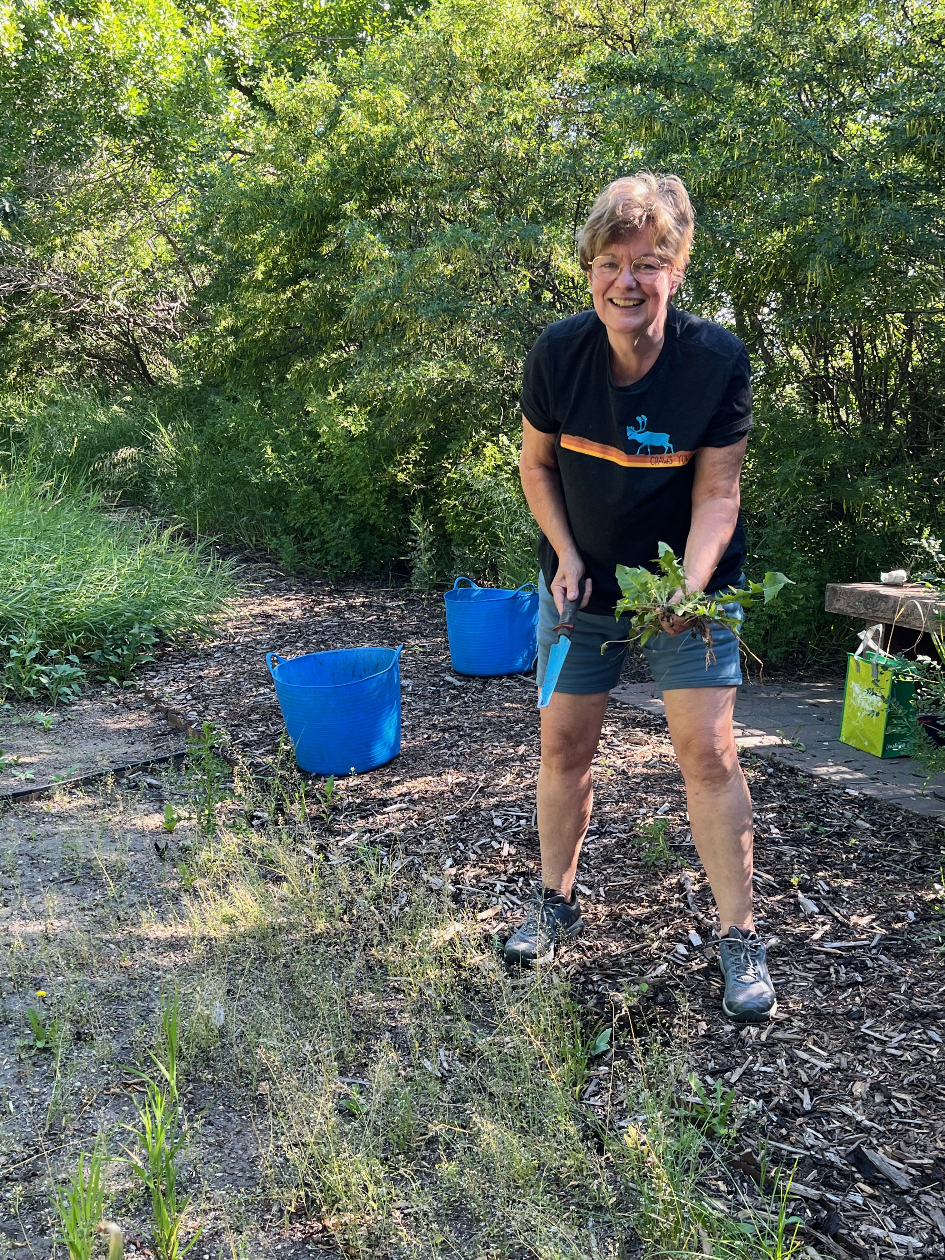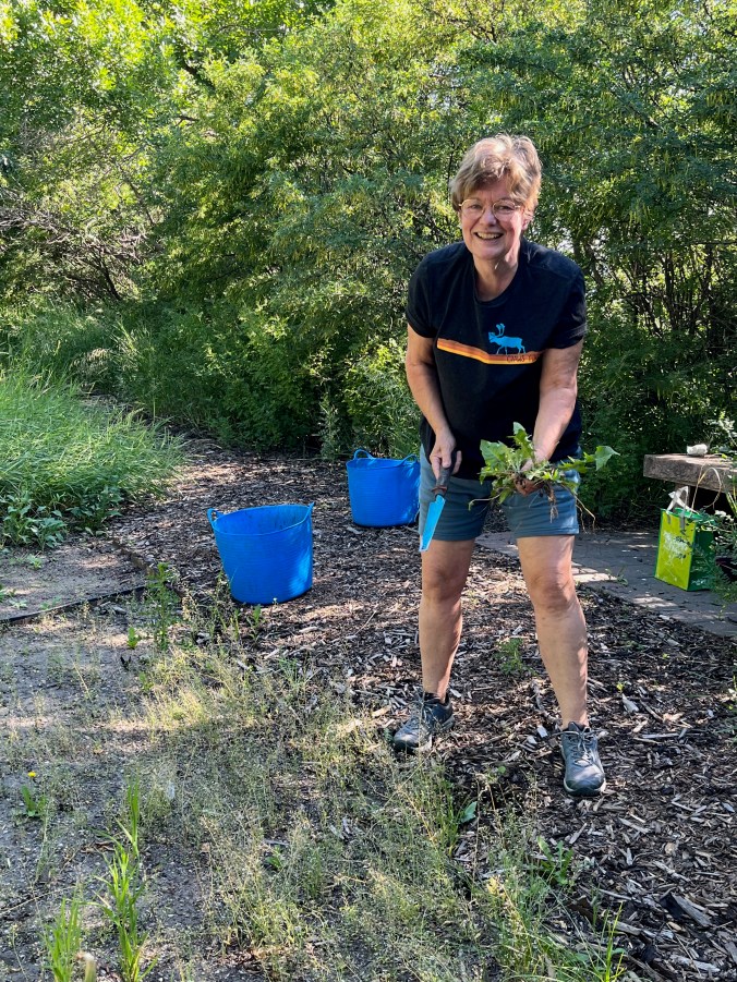 Pulling Dandelions from the native grass plots during artist’s residency at the Coutts Centre for Western Canadian Heritage near Nanton, AB