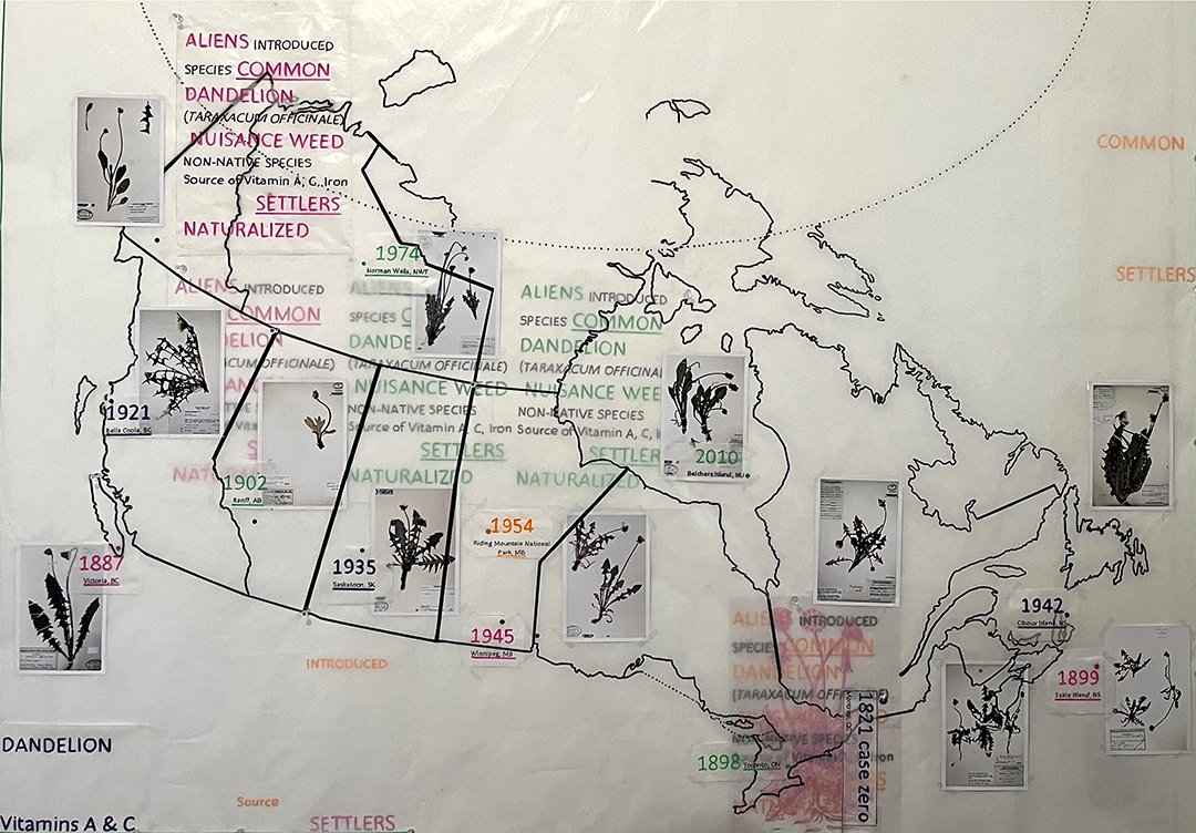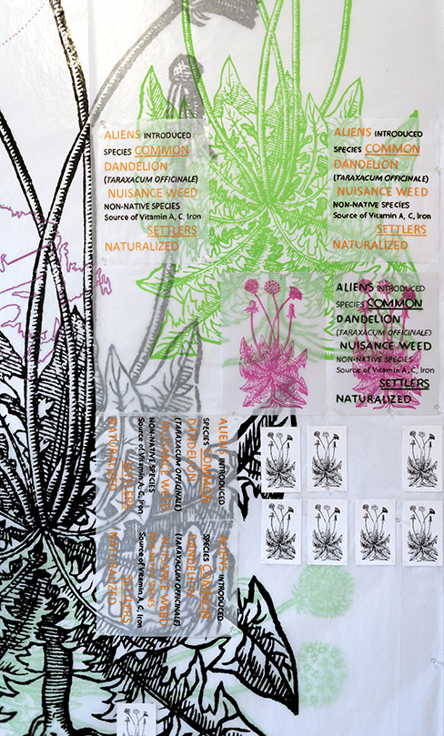 My current collections project is about the Common Dandelion (Taraxacum officinale) which was introduced to North America by Europeans. I’m using this settler plant as both a marker and a proxy for human settlers on the land now known as Canada. Project description.
